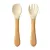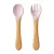 Silicone Baby Spoon and Fork Set with Wooden Handle